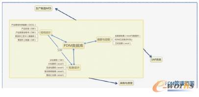PDM 系统将设计数据规范地管理在统一的电子仓库中,其他信息系统可根据需求方便地调用PDM 系统中的各种文件。